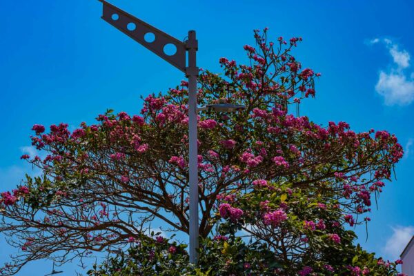Año tras año en la ciudad se produce una «Lluvia Morada» de las flores del arbol de Roble morado (Tabebuia rosea) que baña la ciudad…